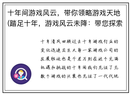 阅读基维斯:一个令人上瘾的游戏体验!如果你正在寻找一款新的游戏来挑战自己的技能和反应时间,那么不妨试试基维斯。这是一款基于HTML5技术的简单却充满挑战的游戏。在此游戏中,你需要使用鼠标控制一个小球穿过一...